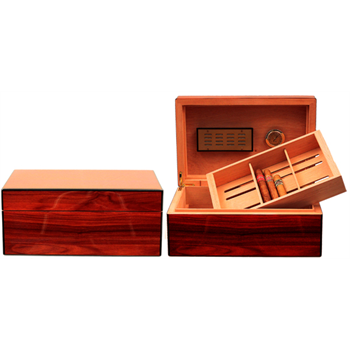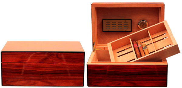יומידור יוקרתימעץ ברזילאי בגימור מבריק. בתוך הקופסא יש מגש סיגרים הנשלף החוצהוהידרומטר למדידת הלחות ושמירה על הסיגרים.